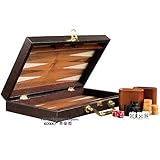 With crisp, clean lines on the inside and a dark, padded faux leather exterior, this classic backgammon set would be right at home in a VIP players room. The cups, checkers, and board surface are all made of solid wood, and the board surface is created with alternating colors of inlaid woods. Two hidden inset magnets keep the backgammon case securely closed when not playing.