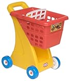 Shopping for groceries with Mommy will seem more real than ever with this pintsize poultry and produce carrier. Though only about 2 feet high, the red-and-yellow cart is designed to resemble a grownup's cart. It even includes a fold-up space with leg holes near the cart's handle--Mommy usually sits baby there in a real cart--where tots can place a tiny doll. Bright blue plastic wheels add contrast and additional color to this cart, which will last as long as your child's toddler years. --Diane Beall